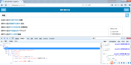 打开某个网站,输入关键字搜索,然后进搜索结果里选择某本小说,进入详情页看简介,进入目录页看章节名和链接,选择某一章,进入内容页来看小说内容。