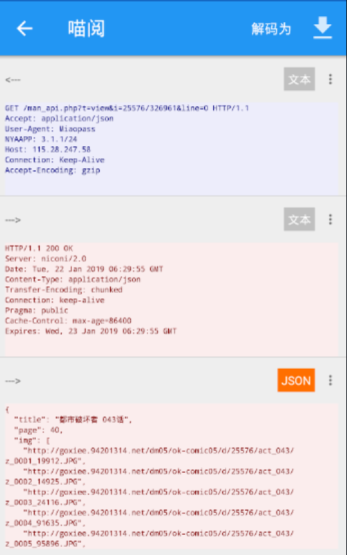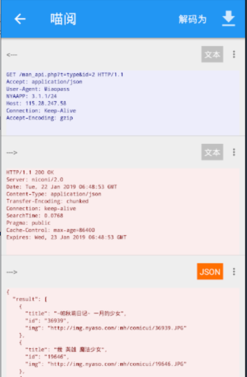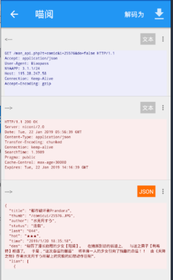 下面给出使用无root抓包抓喵阅app漫画部分的教程: